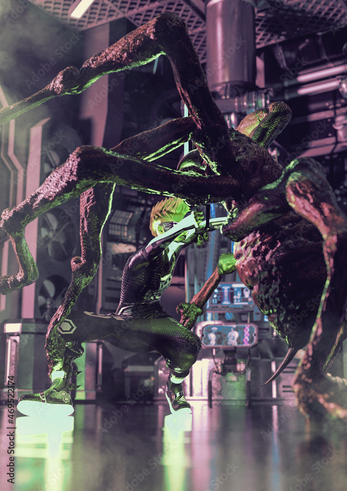In the hallowed halls of this high-tech spider haven, where the eight-legged inhabitants are more likely to receive mail than a fly, a showdown of David and Goliath proportions unfolds. Picture our intrepid hero, not clad in armor, but wielding a shoe of such magnitude it could serve as a makeshift boat for a family of squirrels. With the poise of a seasoned gladiator and the grace of a ballet dancer avoiding legos on the floor, they face the arachnid titans. Each spider, a behemoth so vast, their web could double as a volleyball net for giants. The battle is not just about survival, it's about reclaiming the lab for science – and perhaps, for the pizza delivery guy who's been too terrified to visit since the 'Great Webbing' incident of last Tuesday. The stakes are high, the spiders are huge, and the shoe? Well, it's about to go down in history.